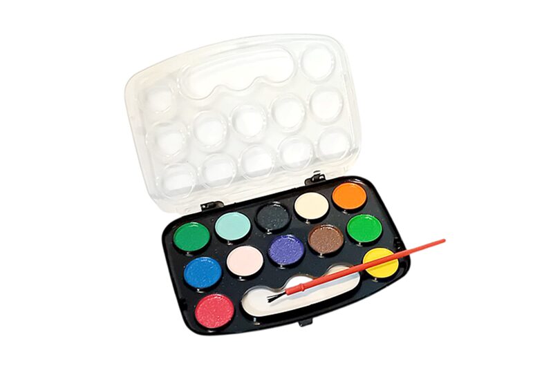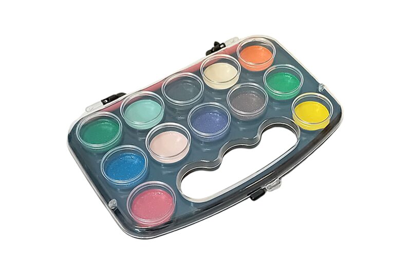Vízfesték szett – 12 csillámos szín + ecset (zárható tartóban).