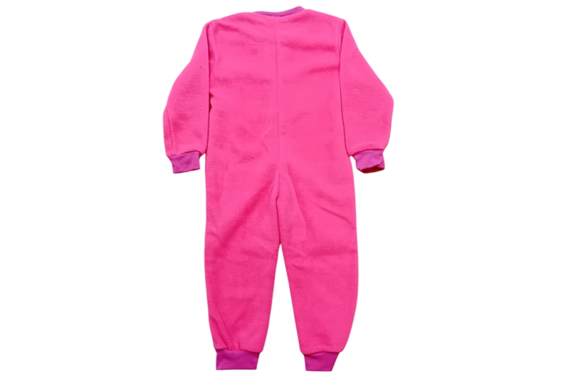 Masha mintás, rózsaszín gyermek overál, kezeslábas pizsama. A pizsama elején Masha és a medve minta látható, hátulja egyszínű, pink. Puha, meleg polár anyagú.