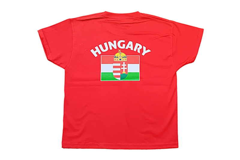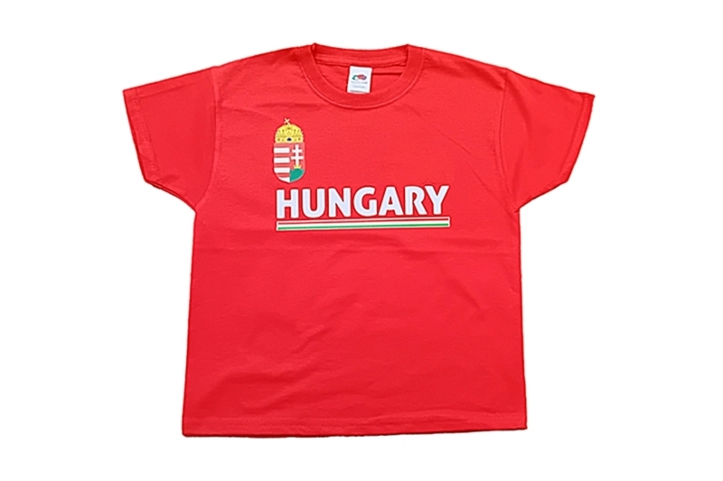 A pamut, HUNGARY feliratos szurkolói póló, kényelmes és komfortos viselet minden kis magyar szurkoló számára.