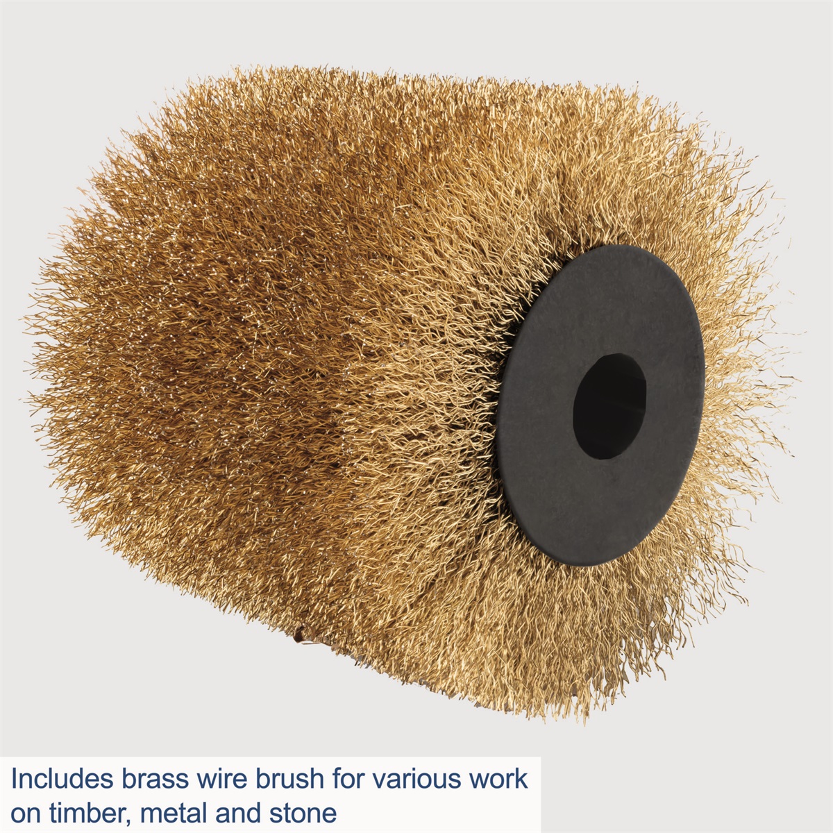 A Scheppach MRS 1300 egy fantasztikus multifunkciós gép, amelynek nem kellene hiányozni egyetlen műhelyből sem. Szeretnéd, hogy a régi fafelületek úgy nézzenek ki mintha újak lennének? Szeretnéd tökéletesre tisztítani a fémrácsokat? Meg kellene szabadulni a régi festék- vagy rozsdarétegtől? Kitisztítani a fugákat burkolaton, járólapon? Akkor megvan a megoldás! És még sokkal többre is képes! A különböző hengereknek köszönhetően nem jelent gondot bármit letisztítani, zsírtalanítani, kipolírozni, kifényezni, lecsiszolni, rozsdamentesíteni stb! A gép számos felhasználási lehetőséget nyújt, hogyan varázsolható újjá szinte bármilyen felület, legyen az fa, fém, kő, burkolat, műanyag, lakozott felület, beton, rozsdamentes acél stb. A tökéletes cél elérése és a kényelmes munkavégzés érdekében a készülék két fogantyúval, nagy biztonsági kapcsolóval, biztonsági burkolattal, elszívó csatlakoztató csonkkal, lágy indítás rendszerrel és 900-3200 ford./perc közötti fordulatszabályozóval is el van látva. A szükséges teljesítményről az 1300 W-os motor gondoskodik. A csomagolás továbbá tartalmaz egy réz kefehengert, amely alkalmas fa-, fém- vagy kőfelületeken történő munkára. További 9 különböző henger külön vásárolható.