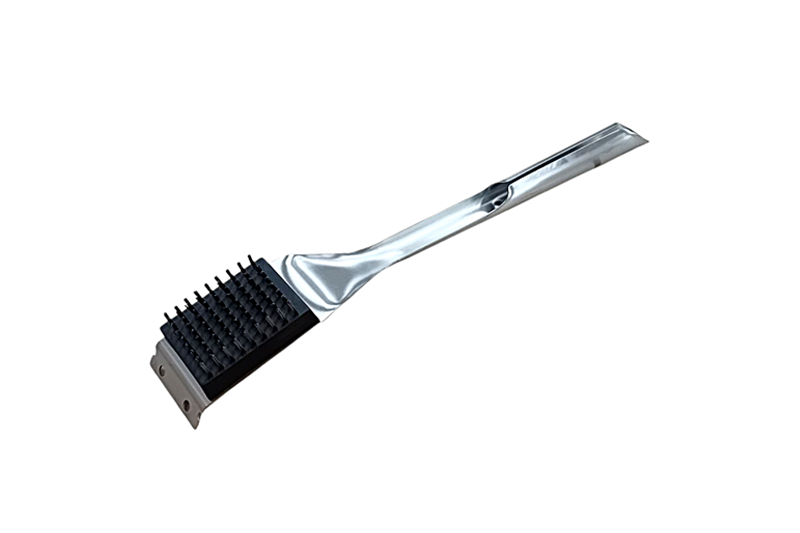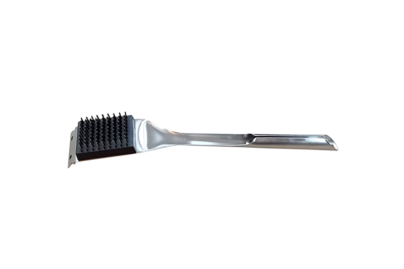 Rozsdamentes acél sörtékkel, kaparóval készült grilltisztító kefe. Segítségével könnyedén tisztítja meg a rács felületét a használat után.
