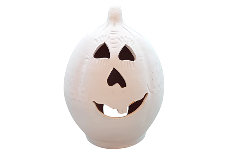 Csempésszen egy kis vidámságot az őszi kertbe, teraszra vagy otthonába ezzel a bájos, kerámia tök dekorációval! A fehérre festett, faragott, agyagból készült tök klasszikus halloweeni formát idéz, mégsem ijesztő, hanem kedves mosolyával barátságos hangulatot áraszt.