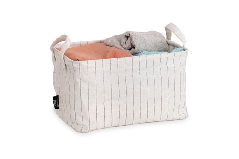 A fehér, szürke csíkos tároló kiválóan alkalmas kiegészítők és kisebb ruhadarabok tárolására. Igy mindig rendben, kéznél lesz a szükséges ruhadarab. Polipamut anyaga megkönnyíti a tisztítását.