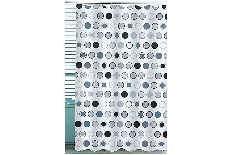A zuhanyfüggöny tökéletes válaszfal zuhanyzójához, fürdőkádjához. A zuhanyfüggöny szürke színe és mintája, nagyon jól kombinálható más fürdőszobai kiegészítőkkel.