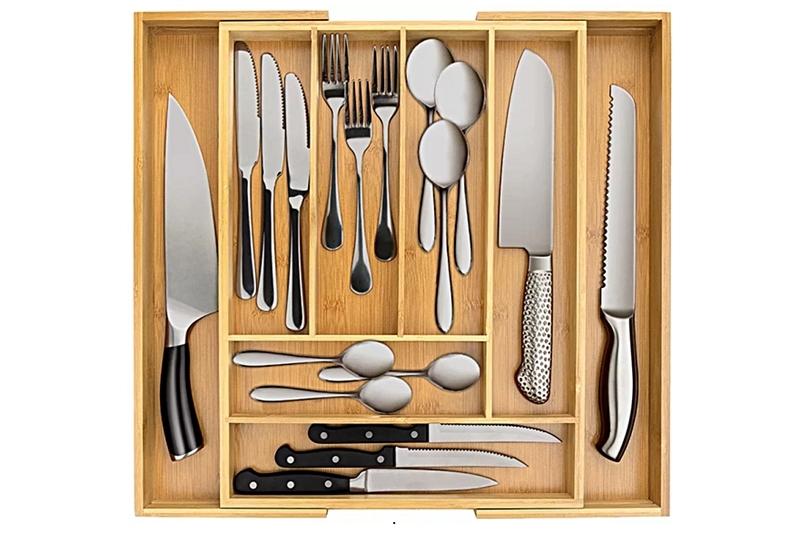 A tartóban összesen 8 rekesz található, amelyek segítségével könnyen rendezheti el evőeszközeit és konyhai eszközeit. Az 100% környezetbarát bambusz anyag nemcsak strapabíró és tartós, hanem esztétikus is, ami szép kiegészítője lehet bármilyen konyhának.