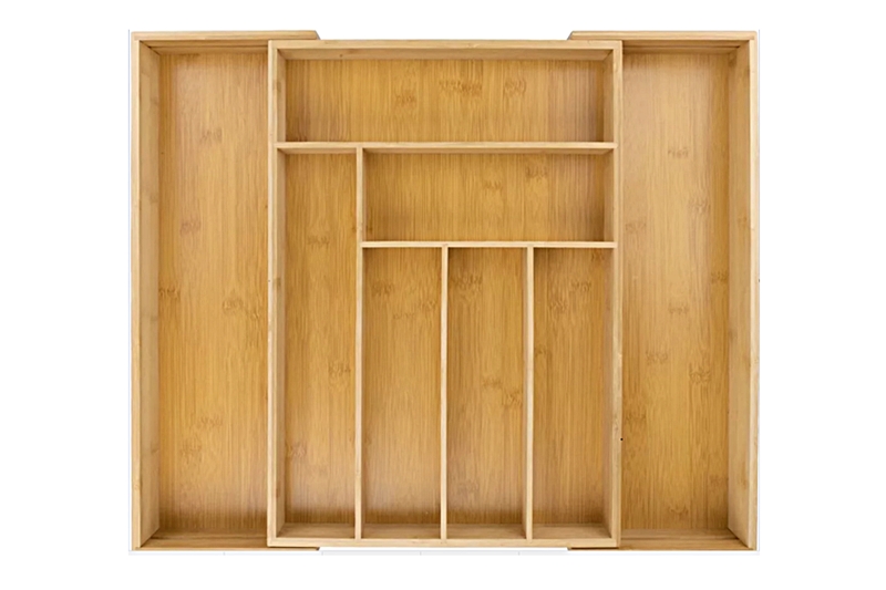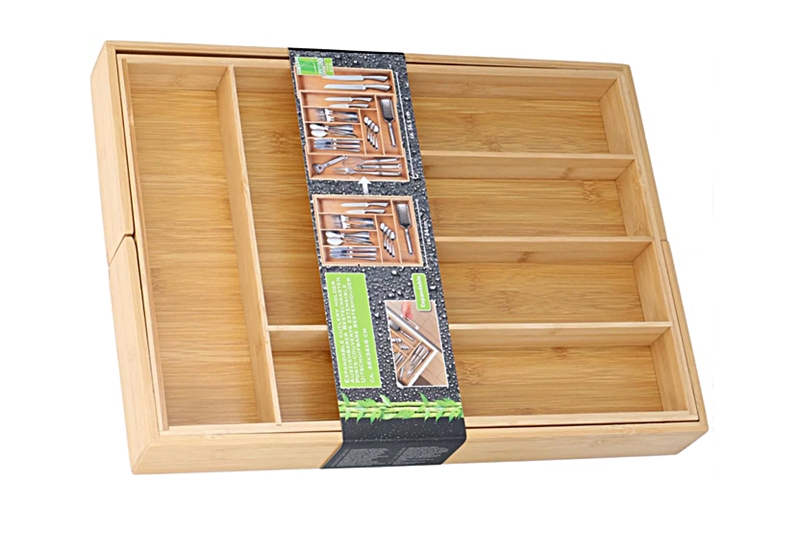 Ez a bővíthető bambusz evőeszköztartó (fiókba) tökéletes megoldás a konyhai eszközök, evőeszközök rendszerezéséhez. A tartó alap mérete 46x34x6 cm, de könnyedén bővíthető széthúzással 56,5 cm hosszúságig, így rugalmasan alkalmazkodik fiókjának méretéhez.