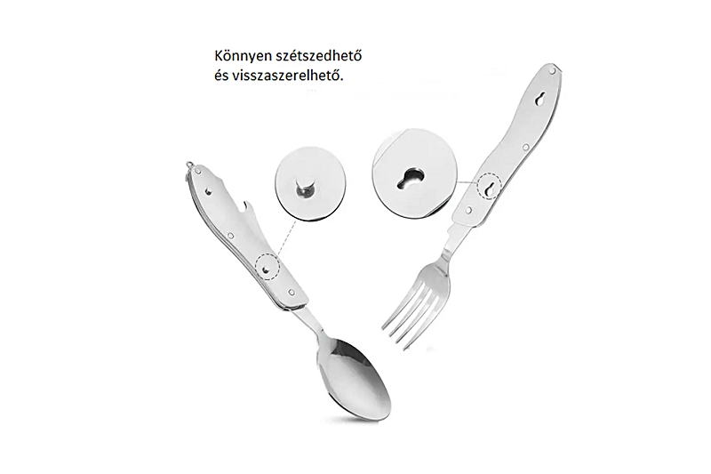 Összecsukható, szétszerelhető evőeszköz készlet a kültéri étkezések, utazások alkalmával tökéletes kiegészítő. A multifunkciós evőeszköz készlet mindenre felkészült, hogy kényelmes és praktikus étkezést biztosítson bárhol is járjon.