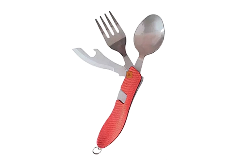 A kempingezéshez és utazáshoz tervezett összecsukható 4in1 evőeszköz készlet minden szükséges eszközt magában foglal: kanál, villa, kés (mely egyben sörnyitó is). Minden darab rozsdamentes acélból készült, hogy hosszú élettartamot és kiváló minőséget biztosítson használója számára.