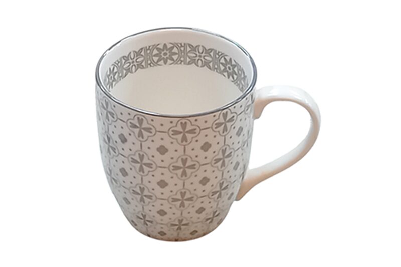 Porcelán bögre M (Nora’s Design) – 300 ml (fehér-szürke).