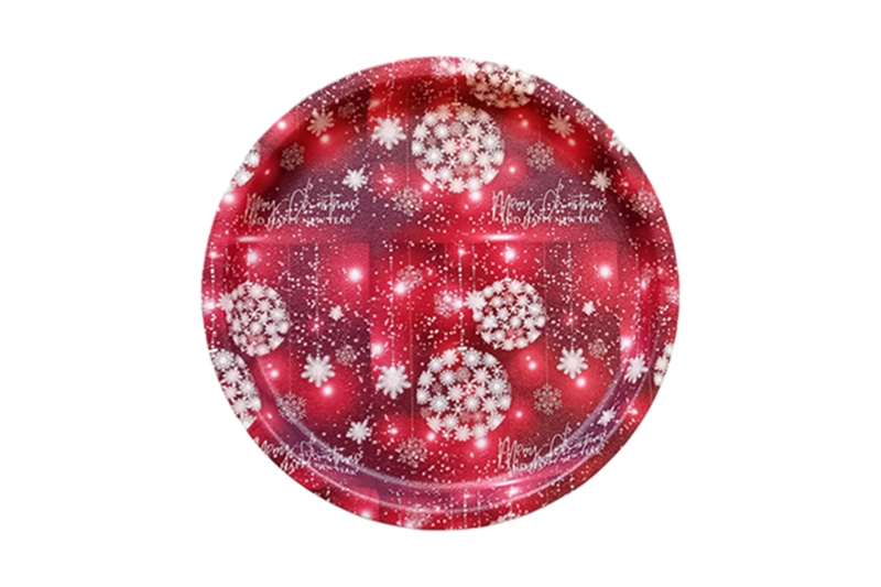 Műanyag tálca karácsonyi mintával – 27,5 cm átmérőjű (piros).