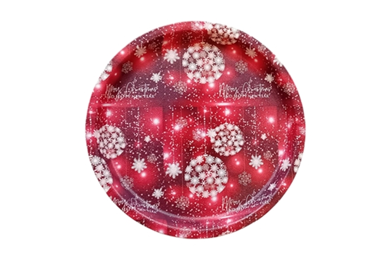 Műanyag tálca karácsonyi mintával – 32,5 cm átmérőjű (piros).