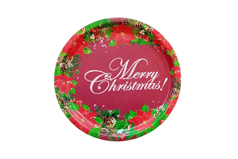 Műanyag tálca karácsonyi mintával – 24 cm átmérőjű (Merry Christmas!)