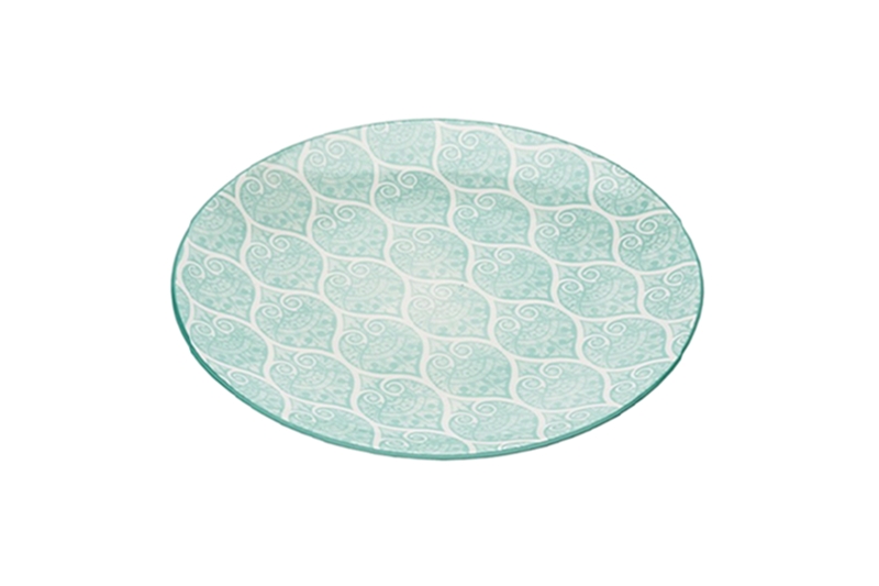 Porcelán lapos kis tányér – Nora’s Design – 21,5 cm, türkiz arabeszk pikkelyminta indás díszítéssel.