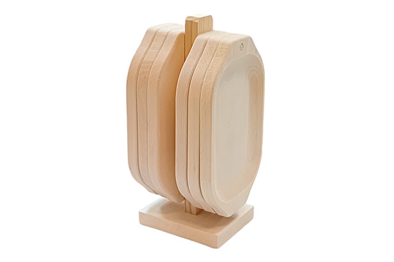 Fa tálaló szett tartón – 6 db tálaló, natúr (28x14x12,5 cm)