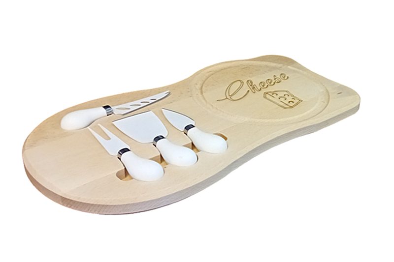 A 41,5×21 cm-es, 2 cm magas fa tábla kifinomult dizájnjával és maci formájával azonnal magára vonja a figyelmet. A tábla fej részén, egy 15 cm átmérőjű karikában a „Cheese” felirat és egy részletgazdag, pirográf technikával készült, apró lyukas sajt varázsolja még egyedibbé ezt az exkluzív tálalót.