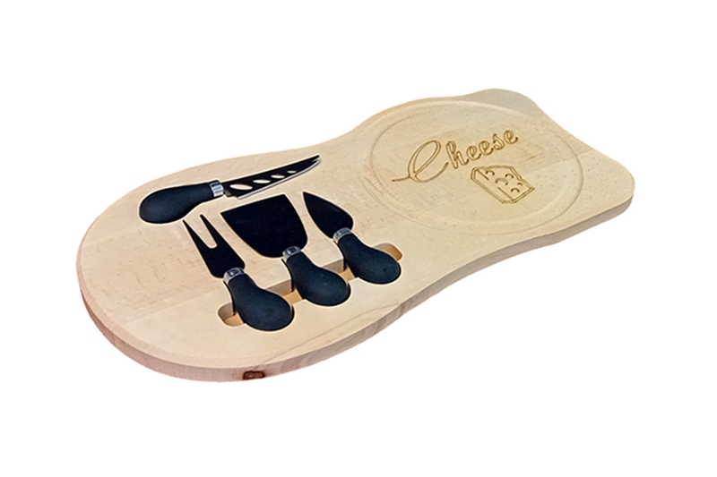 A 41,5×21 cm-es, 2 cm magas fa tábla kifinomult dizájnjával és maci formájával azonnal magára vonja a figyelmet. A tábla fej részén, egy 15 cm átmérőjű karikában a „Cheese” felirat és egy részletgazdag, pirográf technikával készült, apró lyukas sajt varázsolja még egyedibbé ezt az exkluzív tálalót.