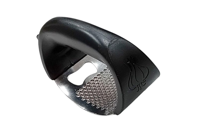Kézi fokhagymaprés – 11×7,2×5,2 cm – ívelt, fekete.
