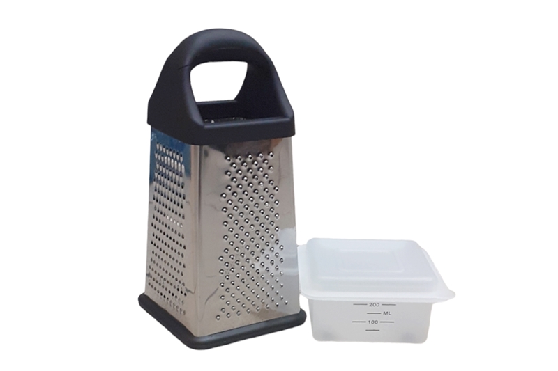A reszelő folyó víz alatt kefével könnyen tisztítható, a műanyag tartály pedig a mosogatógép felső emeletébe helyezhető.