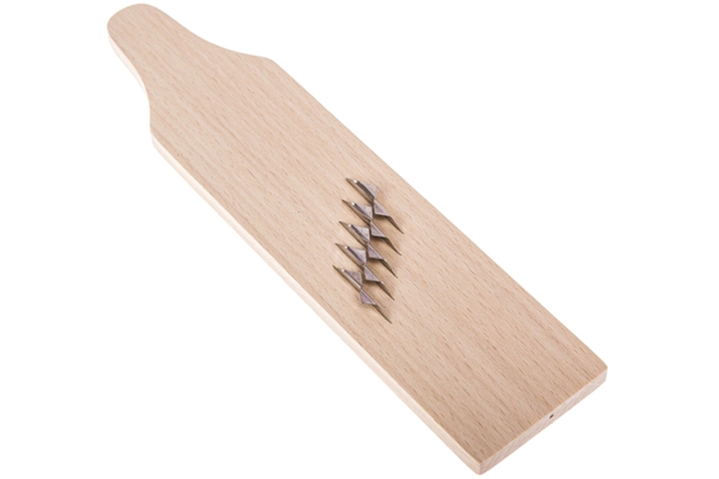 Munkafelület bükkfa, kis nyeles munkapad, vágószerkezete 5 db rozsdamentes acélpenge.