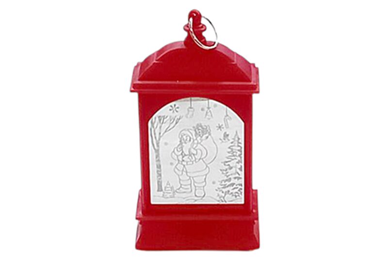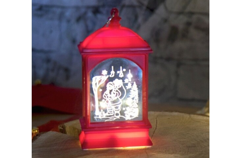 Karácsonyi ledes lámpás dekoráció – piros (13x7x4 cm).