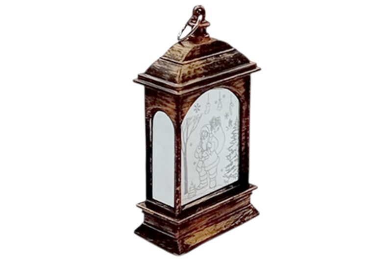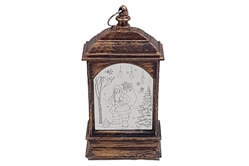 Karácsonyi ledes lámpás dekoráció – koptatott bronz (13x7x4 cm).