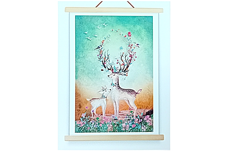 5D gyémántszemes kirakó – 40×60 cm, virágos szarvas kicsinyével (függeszthető).