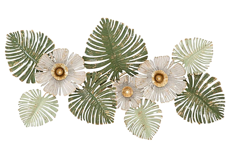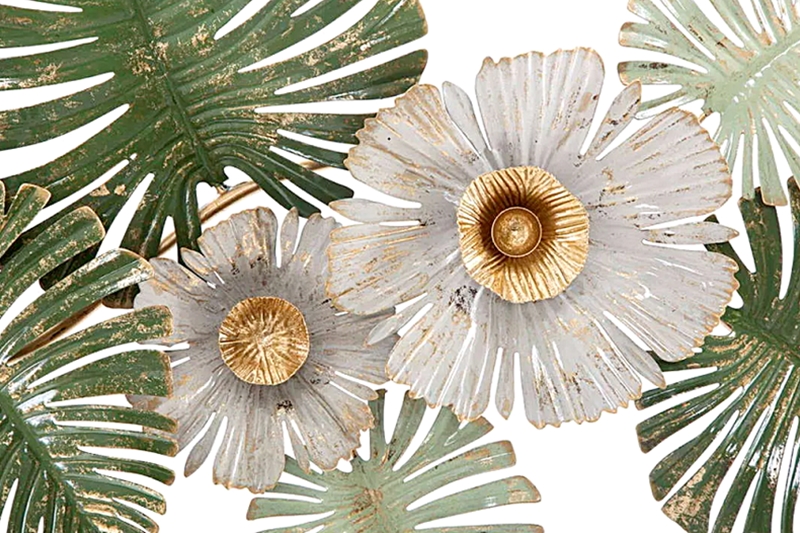 - Színei: Ez a kifinomult fali dekoráció a zöld, arany és pasztell fehér színárnyalatok elegáns kombinációját ötvözi, hogy a tér különleges és meghitt atmoszférát sugározzon.