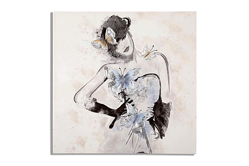 Ez a vászon falikép tökéletes díszítése lehet otthonának, és igazi beszélgetést indít el minden látogató között. Új perspektívát nyit meg az absztrakt művészet világában és a női alak, a pillangók egyedi és misztikus kombinációjával különleges élményt nyújt.