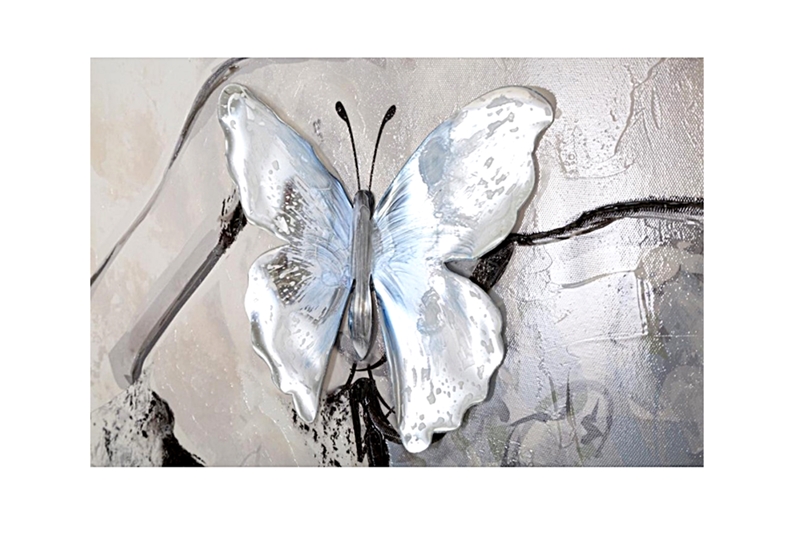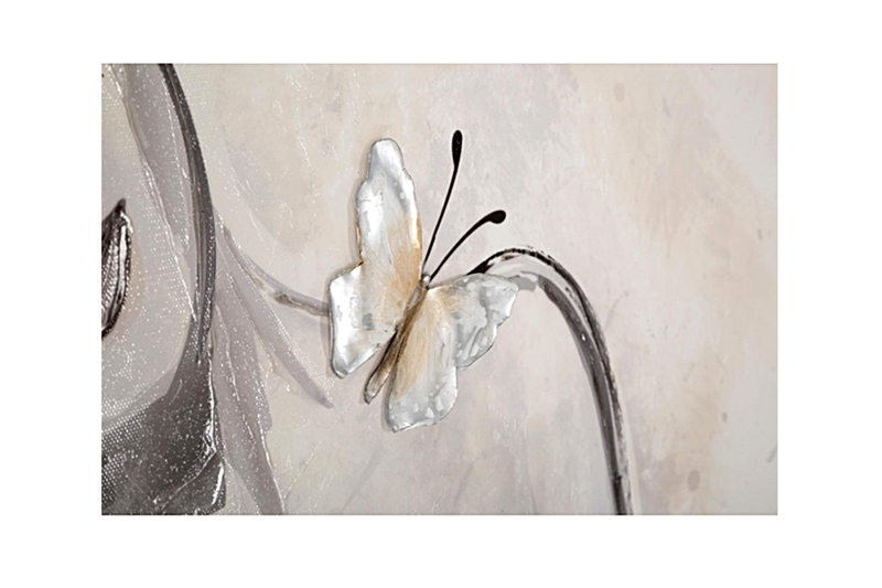 A festmény színpaletta kifinomult és visszafogott. A fehér vásznon a fekete, szürke, ezüst színek dominálnak, kiegészítve néhány bézs árnyalattal. Ez a színpaletta egyedülálló módon játszik össze a pillangókkal, amelyek a festmény középpontjába kerülnek, és élettel töltik meg a képet.