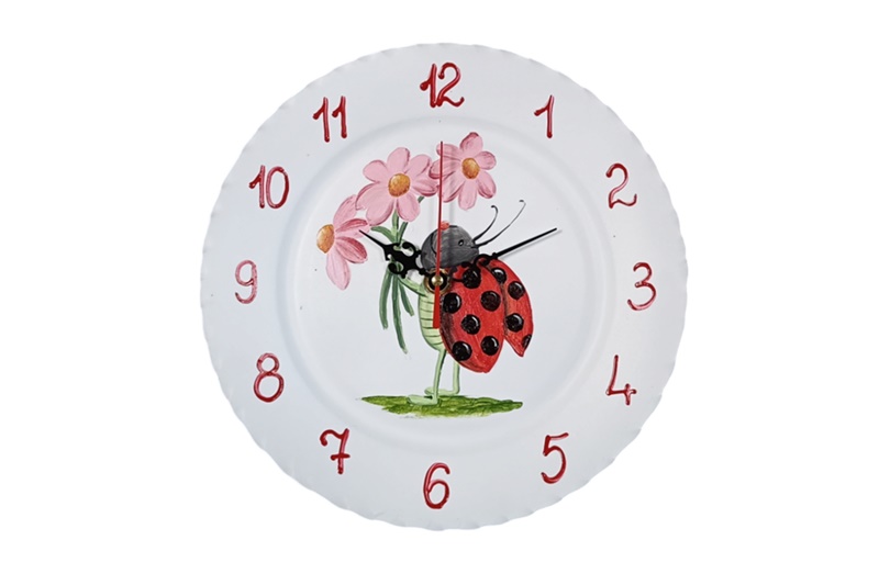 Kézműves színes kerámia falióra, katica mintával 25 cm. Ø