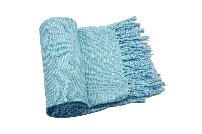 Vékony takaró, rojtos – 127×152 cm, kék színű (végein 10-10 cm-es rojtokkal).