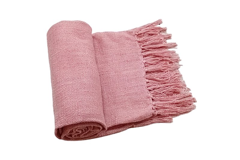 Vékony takaró, rojtos – 127×152 cm, mályva színű (végein 10-10 cm-es rojtokkal).