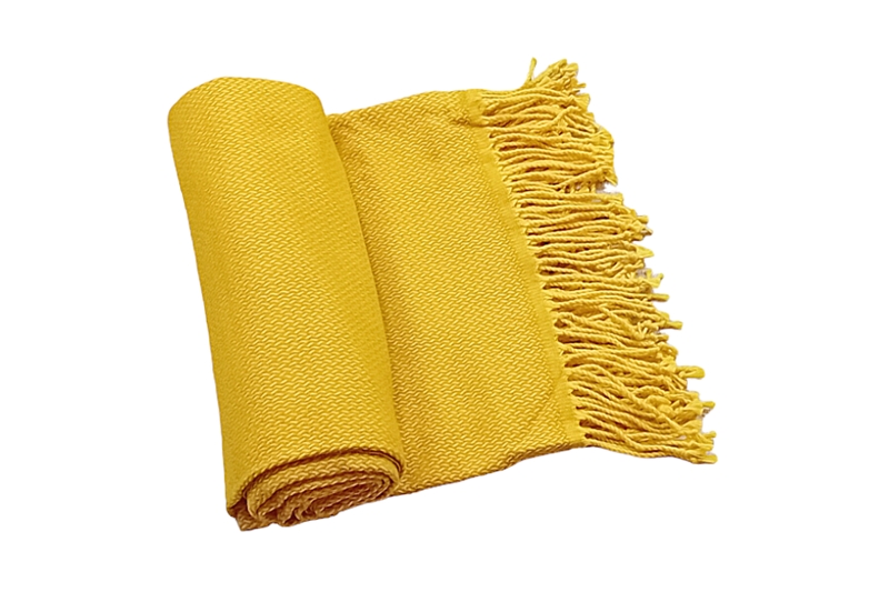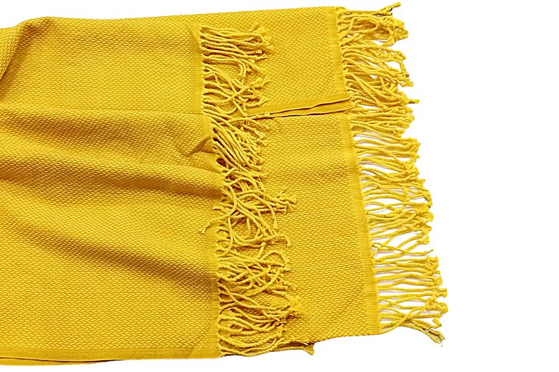 Vékony takaró, rojtos – 127×152 cm, mustársárga színű (végein 8-8 cm-es rojtokkal).
