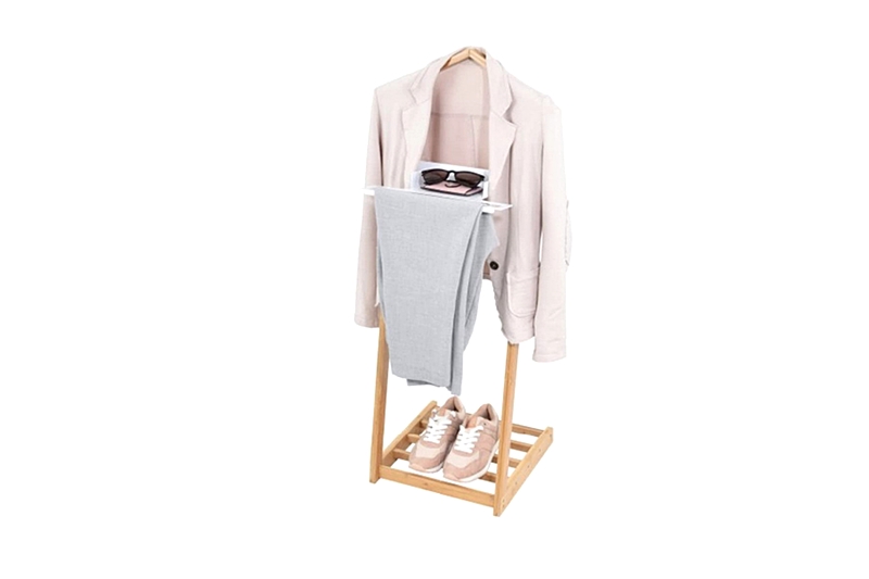 A szobainason található fém nadrágtartó lehetővé teszi ruhái rendezett és átlátható tárolását. Emellett az alsó részen elhelyezett cipőtartó még több praktikus tárolóteret kínál a cipőknek.