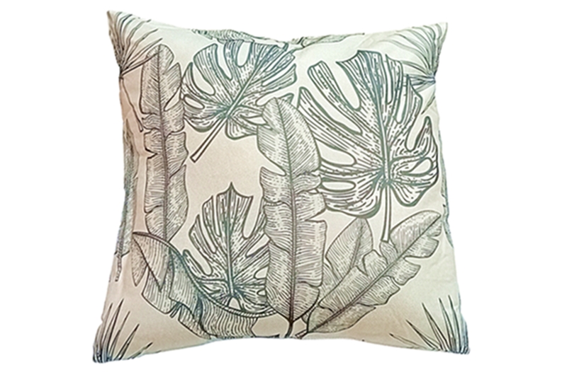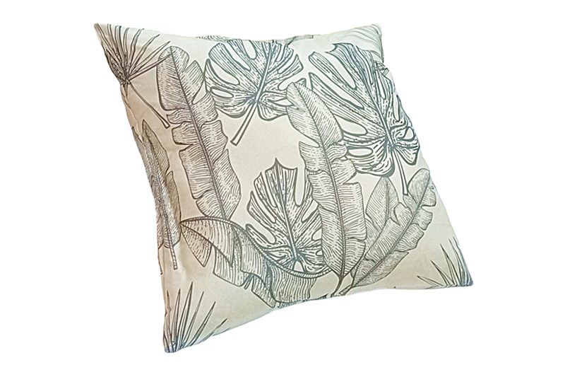Díszpárna – pálmaleveles, 40×40 cm (bézs alapon keki pálmalevelek).