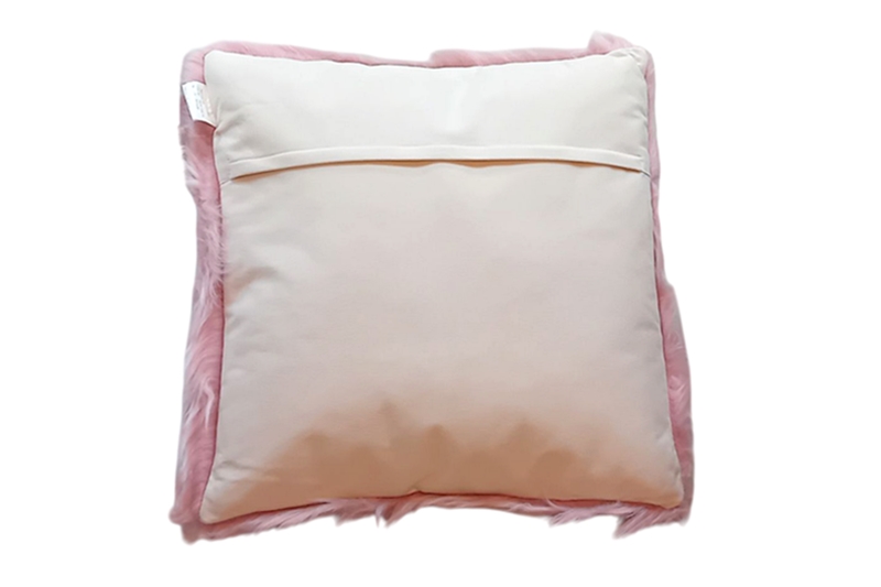 Szőrmés díszpárna – 45×45 cm – rózsaszín.