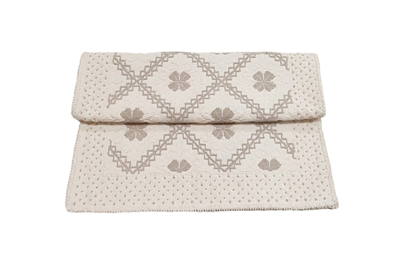 Szőtt szőnyeg, 100 % pamut – 80×200 cm natúr-bézs virágos – cikk-cakk elválasztással.