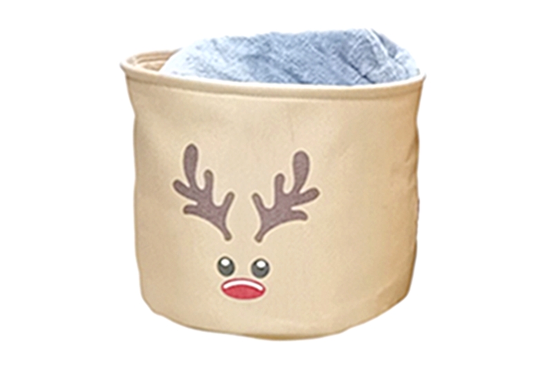 Henger alakú, szarvasos karácsonyi tárolókosár – 25x25x20 cm.