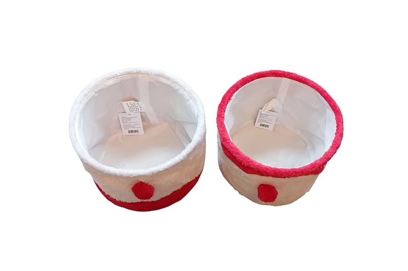 Ez a vidám, Mikulást idéző tárolókosár nemcsak dekoratív, de rendkívül praktikus is. A 25 cm átmérőjű és 20 cm magas kosár kétféle – piros-fehér és fehér-piros – színkombinációban kapható, elöl piros pompommal díszítve, ami Mikulás orrára emlékeztet, és fogantyúként is funkcionál. Puha, plüss hatású poliészterből készült, belül bélelt, tetején merevítővel, alja pedig hajlékony. Használaton kívül könnyedén összenyomható. Tökéletes választás ünnepi ajándékok vagy apróságok tárolására a gyerekek legnagyobb örömére.