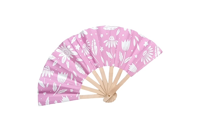 Ez az összecsukható kézi legyező tökéletes választás bármilyen alkalomra, amikor egy kis hűsítő frissességre van szüksége. A legyező pasztell mályvarózsaszín alapon fehér virágokkal üde, nyári hatást kelt, így kiváló kiegészítője lehet a forró nyári napoknak.