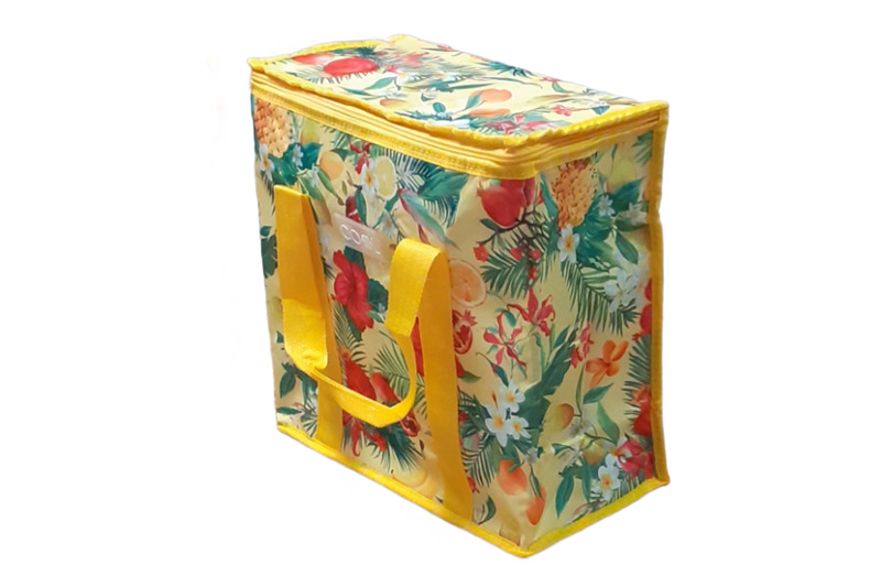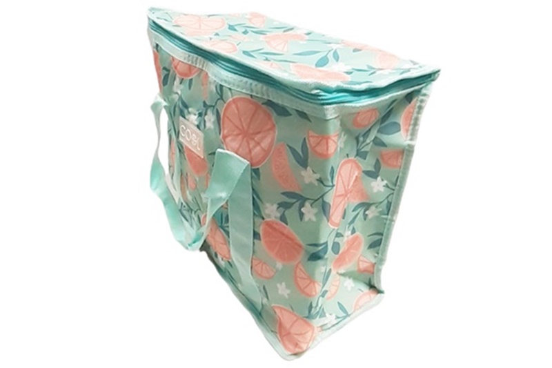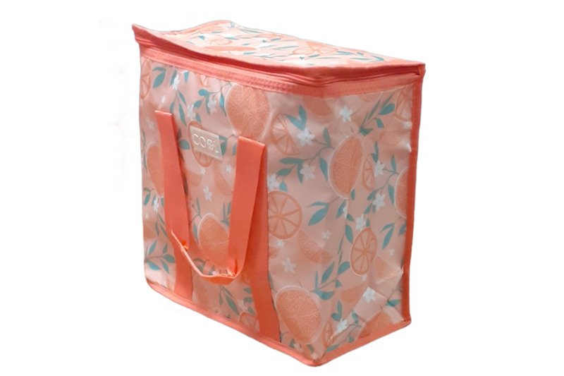 Könnyű, cipzáras hűtőtáska alumínium béléssel. A benne tárolt hűtött ételek és italok sokáig hűvösek maradnak. Vállpánt nélküli, praktikus felső nyithatóság cipzárral és két megerősített fogantyúval.