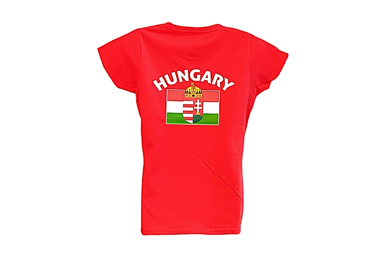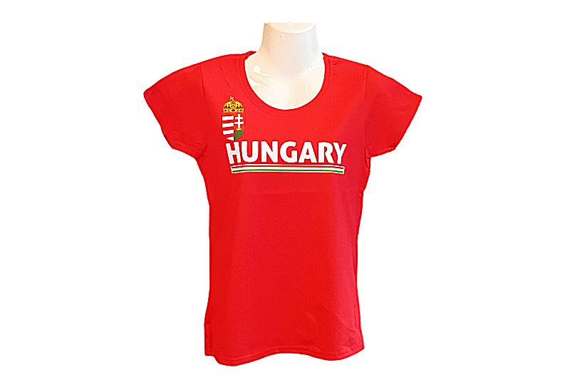 Hungary feliratos, címeres női póló, piros – XL-es.