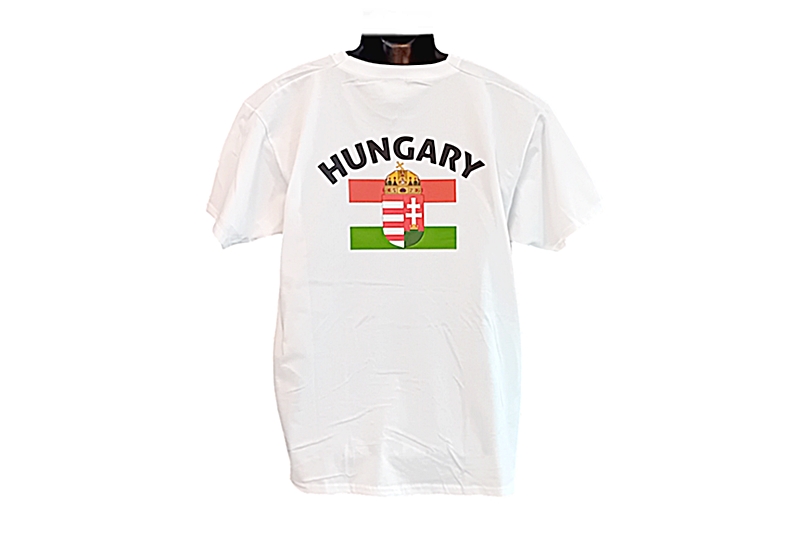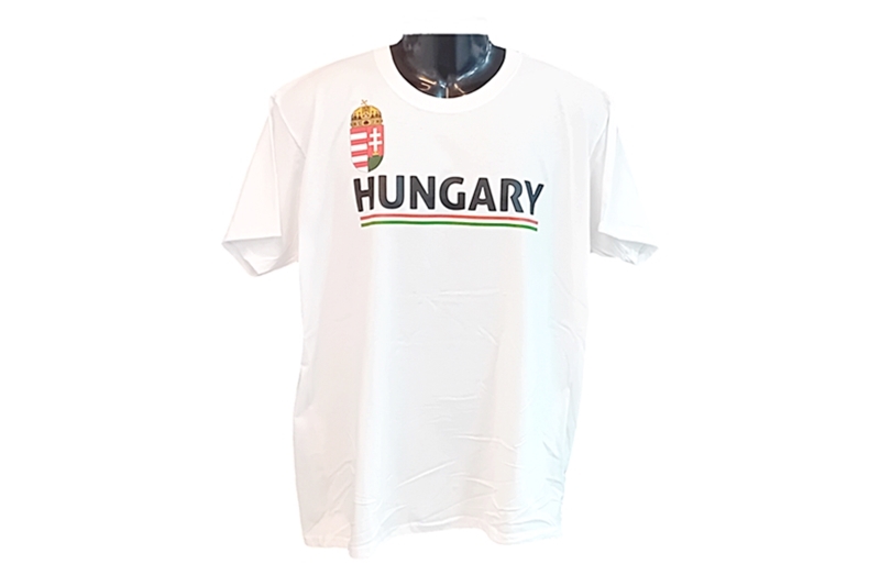 A pamut, HUNGARY feliratos szurkolói póló, kényelmes és komfortos viselet minden magyar szurkoló számára.