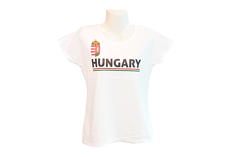 Hungary feliratos, címeres női póló, fehér – M-es.