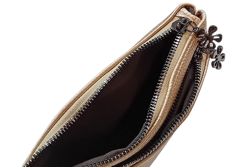 Minden cipzárhúzó fém virágmintás díszítést kapott, amely elegáns megjelenést biztosít. A pénztárca oldalára karabinerrel egy bojtot is fel lehet akasztani, ami tovább növeli az egyediségét és stílusos megjelenését. A puha PU anyag tartósságot és kényelmet nyújt, így a pénztárca ideális választás mindennapi használatra. Anyaga révén könnyen tisztán tartható.