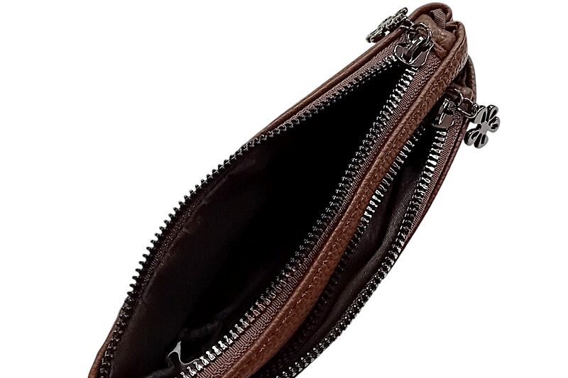 Minden cipzárhúzó fém virágmintás díszítést kapott, amely elegáns megjelenést biztosít. A pénztárca oldalára karabinerrel egy bojtot is fel lehet akasztani, ami tovább növeli az egyediségét és stílusos megjelenését. A puha PU anyag tartósságot és kényelmet nyújt, így a pénztárca ideális választás mindennapi használatra. Anyaga révén könnyen tisztán tartható.