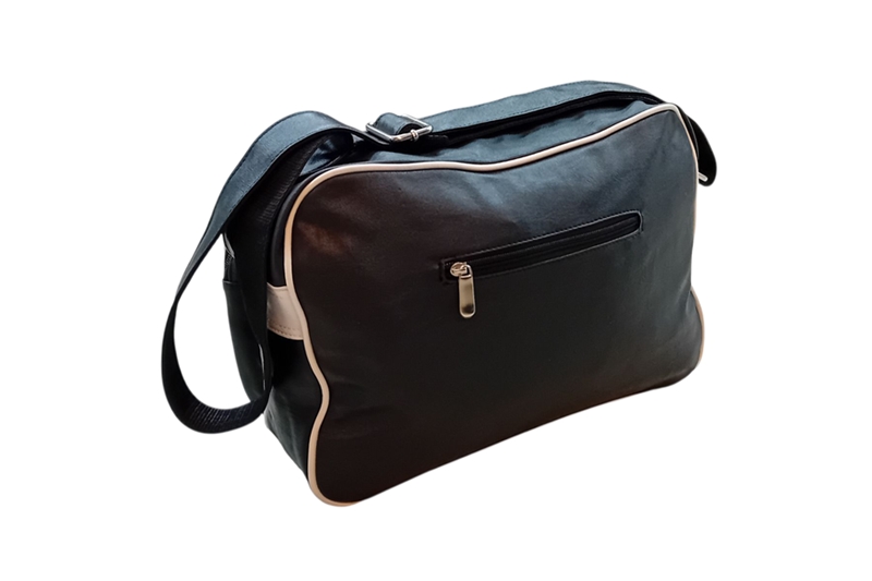 cipzáras zseb. A táska elején egy nagyobb méretű, szintén cipzáras rekesz található, melynek mérete: 36x19x5 cm. A táska hátoldalán egy kb. 17 cm hosszúságú cipzáras zseb található. Állítható vállpántjának köszönhetően hordható váll- és oldaltáskaként is.