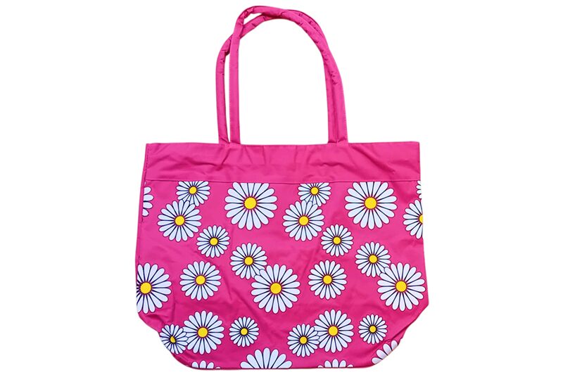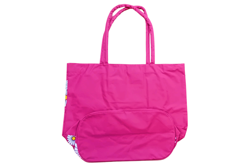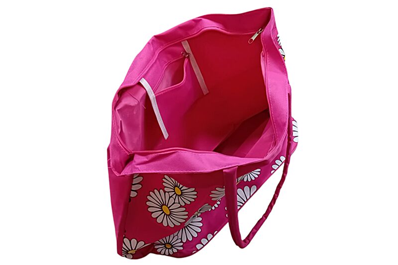 Nagy méretű strandtáska, margarétás (55x43x21 cm), pink.